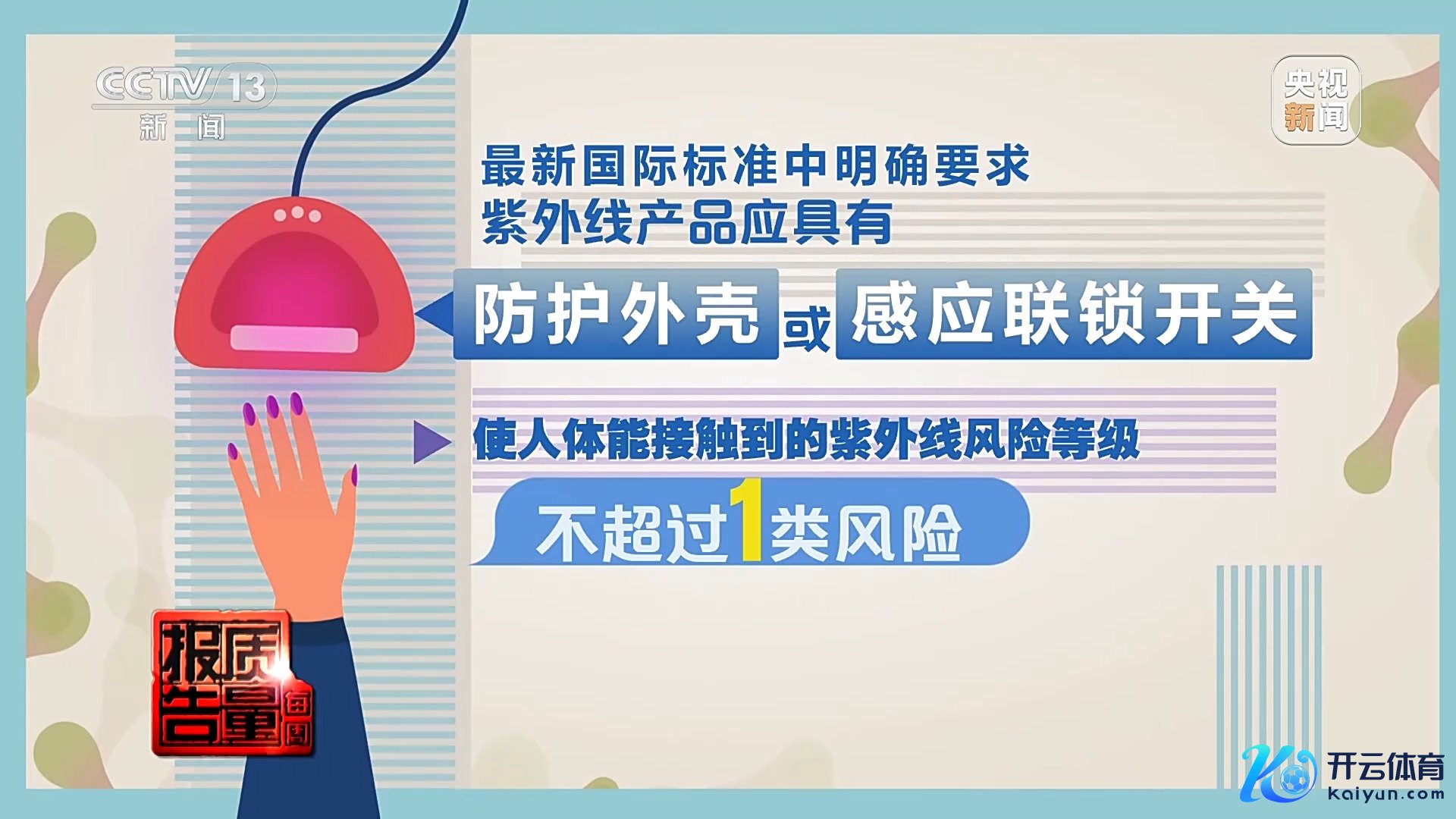 上海质检院国度电光源质地历练检测中心(上海)副主任杨樾:紫外光不可溢出到好意思甲灯这个竖立之外,那也就是说这个制造商,必须保证悉数的光都封锁在这个装配内部,这个好意思甲灯好多都是莫得提神措施的,你会看到它内部的一些光溢出,这个溢出对眼睛的伤害是更大的。
