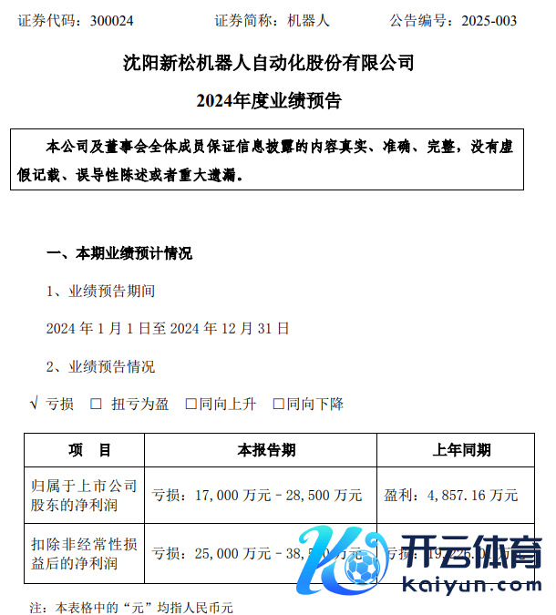 机器东说念主发布2024年度功绩预报,预测包摄于上市公司股东的净利润亏本1.7亿元-2.85亿元,上年同期盈利4857.16万元。主要原因是公司所说明的投资收益下跌,其中,2023年度非频繁性损益中因公司子公司中科新松有限公司增资后不再被纳入并吞边界所说明的投资收益约为1.27亿元,本报告期无上述事项。同期报告期内公司对子营公司职权法核算的始终股权投资收益同比上期有所下跌。另外,公司加速鼓吹半导体装备业务的产业化程度,预测贸易收入及毛利率同比有所栽种。